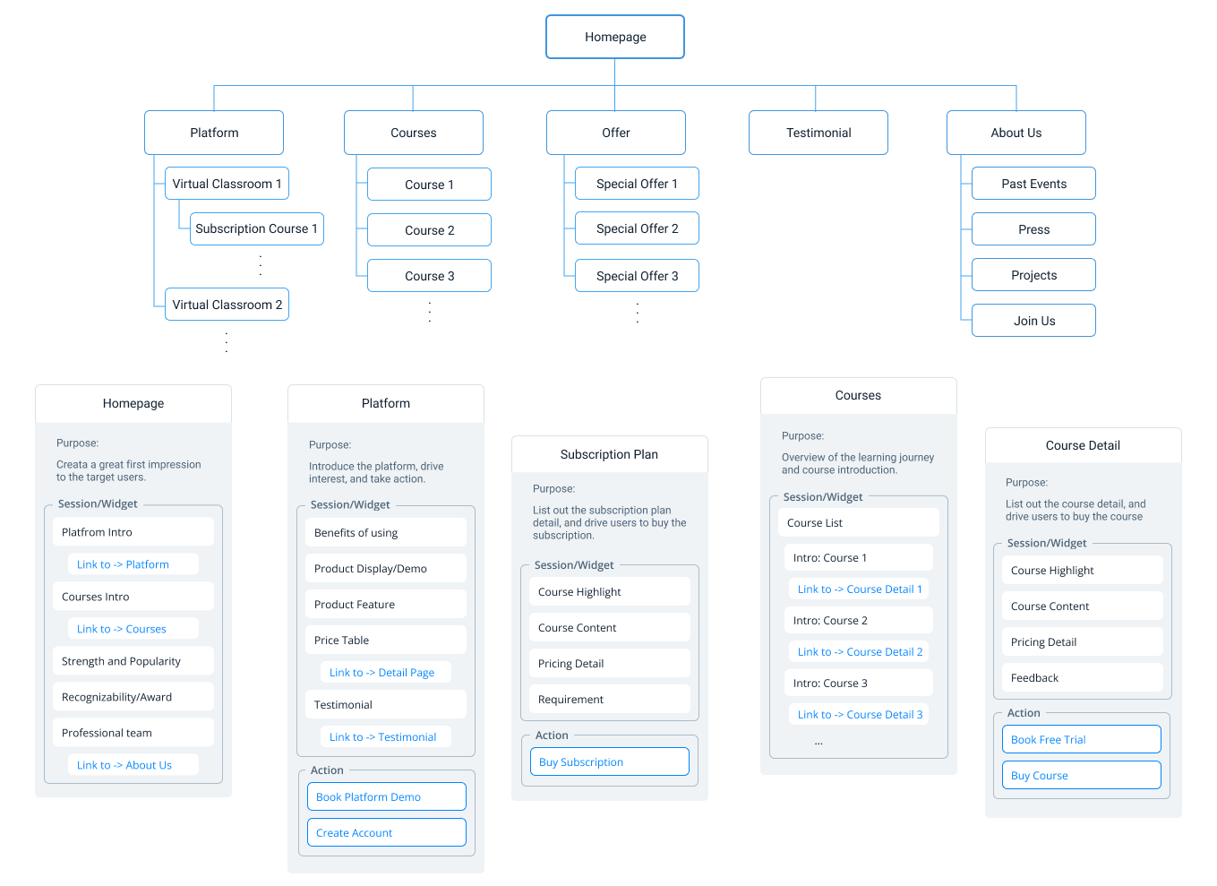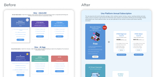 Through various styles and the motion effects, it is shown that the platform subscription is a basic core service, and the course subscription is an additional products that need to be used in conjunction with the platform.